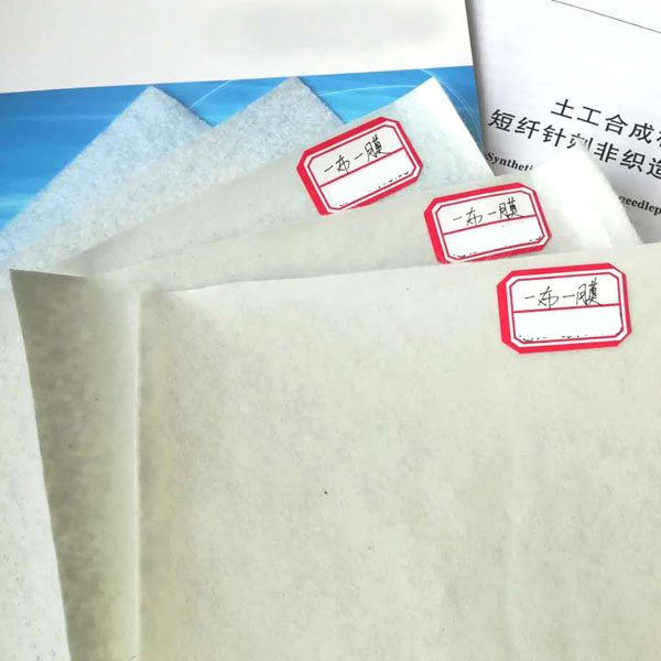 「短絲」一布一膜復合土工膜是用土工織物與土工膜復合而成的不透水材料,與其對應的還有「長絲」,即土工織物為短絲土工布或長絲土工布;無論哪一種其主要用于防滲,分為一布一膜和兩布一膜,抗拉、抗撕裂、頂破等物理力學性能指標高,能滿足水利、市政、建筑、交通、地鐵、隧道等土木工程需要。由于其選用高分子材料且生產工藝中添加了防老化劑,故可在非常規溫度環境中使用。兩布一膜是由一層土工織物與一層高分子材料(一般為膜材)經過壓延或熱熔復合而成的土工合成材料。